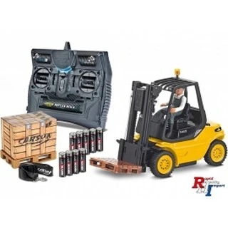 De CARSON-MODEL SPORT Forklift Linde H 40 D – geel is een volledig functioneel RC model dat lasten tot 350g kan heffen. De heftruck en zijn vele functies worden op afstand bestuurd door een 2,4 GHz 6-kanaals console zender. Naast de rijfuncties heeft de heftruck een volledig functionele mast en een licht- en geluidsmodule. Bestuurdersfiguur, een pallet met lading en rij/zender batterijen zijn inbegrepen. Voeding wordt geleverd door 9 AA-cellen (inbegrepen), 5 in de truck en 4 in de afstandsbediening.
