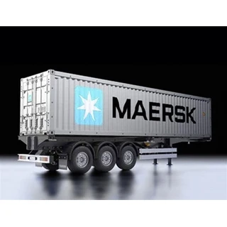 Deze Tamiya 40-feet container met oplegger in het design van de Deense vervoerde Maersk is een absoluut detailgetrouw bouwpakket.